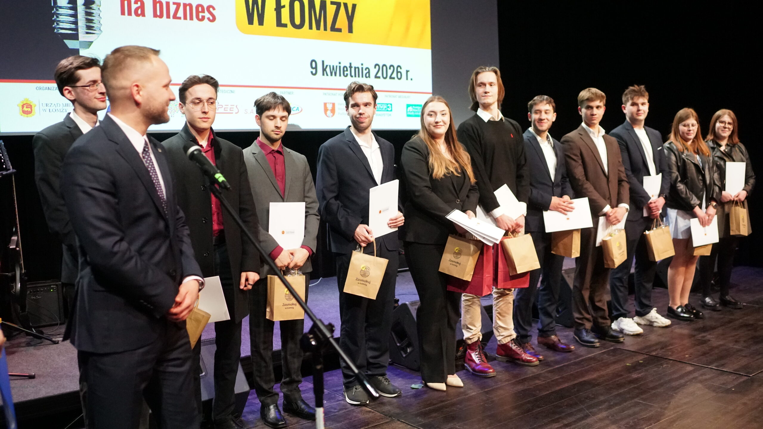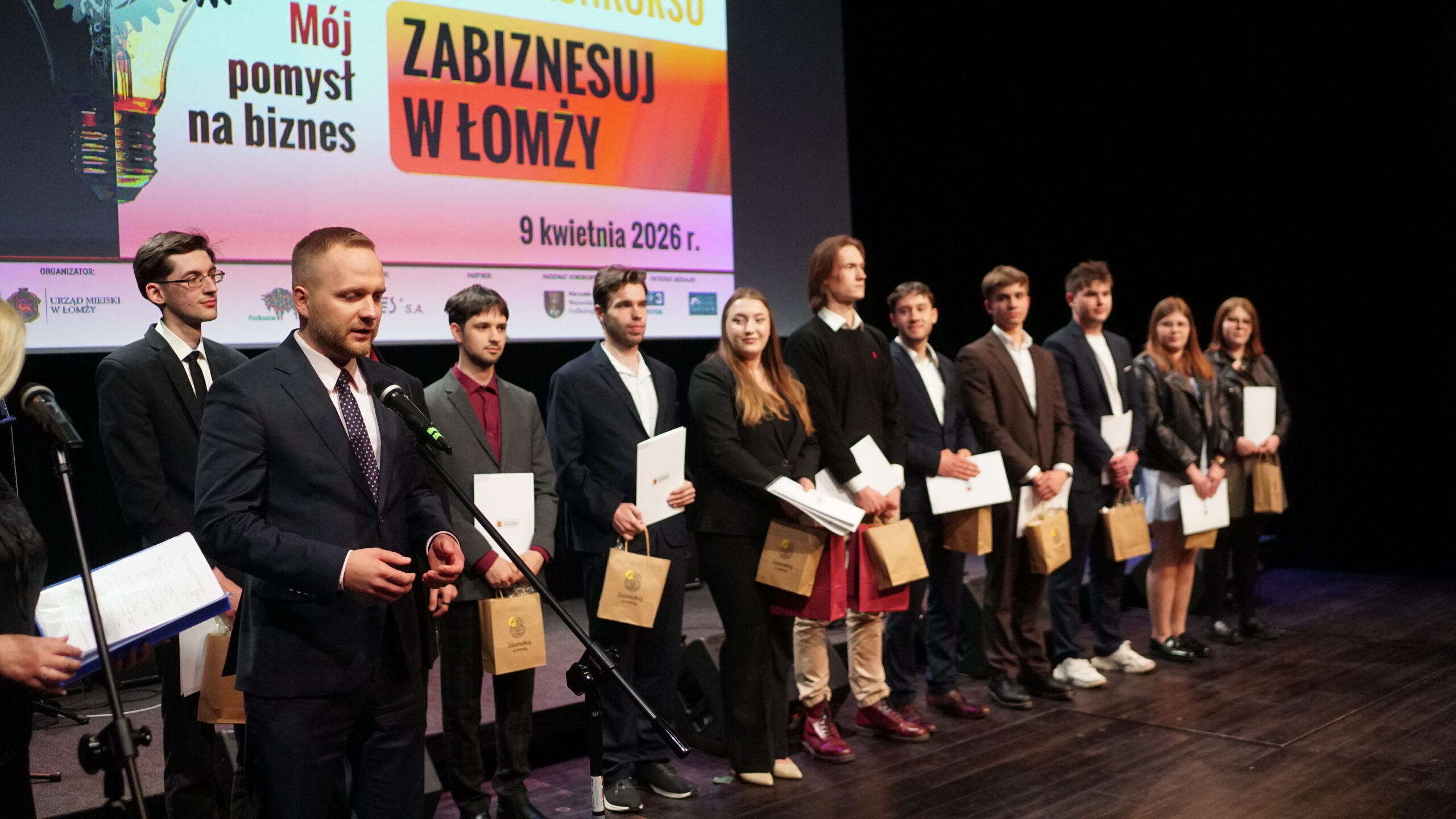 W czwartek 9 kwietnia 2026 r. w Hali Kultury w Łomży odbyła się gala finałowa konkursu „Mój pomysł na biznes – Zabiznesuj w Łomży”. Zwycięzcy IV edycji tej rywalizacji zostali wyłonieni spośród 17 finalistów, których projekty mają potencjał znacząco wpłynąć na oblicze rynku w Łomży. Warto nadmienić, że w tym roku do tego zacnego grona, po raz pierwszy dołączyli przedstawiciele łomżyńskich uczelni wyższych.